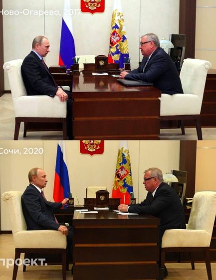 Уже через несколько месяцев, когда ситуация с COVID в России стабилизировалась, российский президент стал появляться на публике и проводить очные встречи. Однако сам Путин при общении с помощниками и посетителями держал социальную дистанцию.