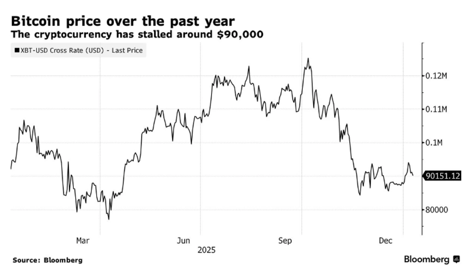 Біткоїн завершує свій перший повний тиждень торгів у 2026 році майже без змін, коливаючись близько рівня $90 000. Це приблизно на 2% менше, ніж роком раніше. Криптовалюта не змогла подолати позначку в $95 000, що фактично залишає її нижче цінової стелі з моменту значного розпродажу в жовтні минулого року. Про це повідомляє Bloomberg, пише УНН.