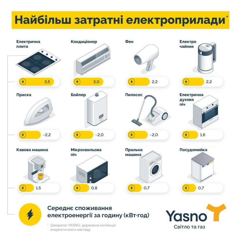 YASNO рекомендует выключать свет в комнатах, когда там никого нет, не включать одновременно много энергозатратных приборов, уменьшить время работы бойлеров, а по возможности ставить стирку на ночные часы.